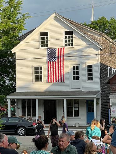 The building materials which he used came mostly from old houses and barns which he tore down at Pulpit Harbor and other places around the Island. He would have had to buy some supplies, such as Cement, Main Studding, Tar Paper, Nails, Paint, Shingles so it was probably about 50-50. It is known that the Schoolhouse at Pulpit Harbor and the George Wooster Barn at Bartlett Harb or were included. His son Arthur helped take down some of the buildings and there probably were others. Not much as been recorded about who helped build the store but surely he had to have help with the staging and heavy timbers.